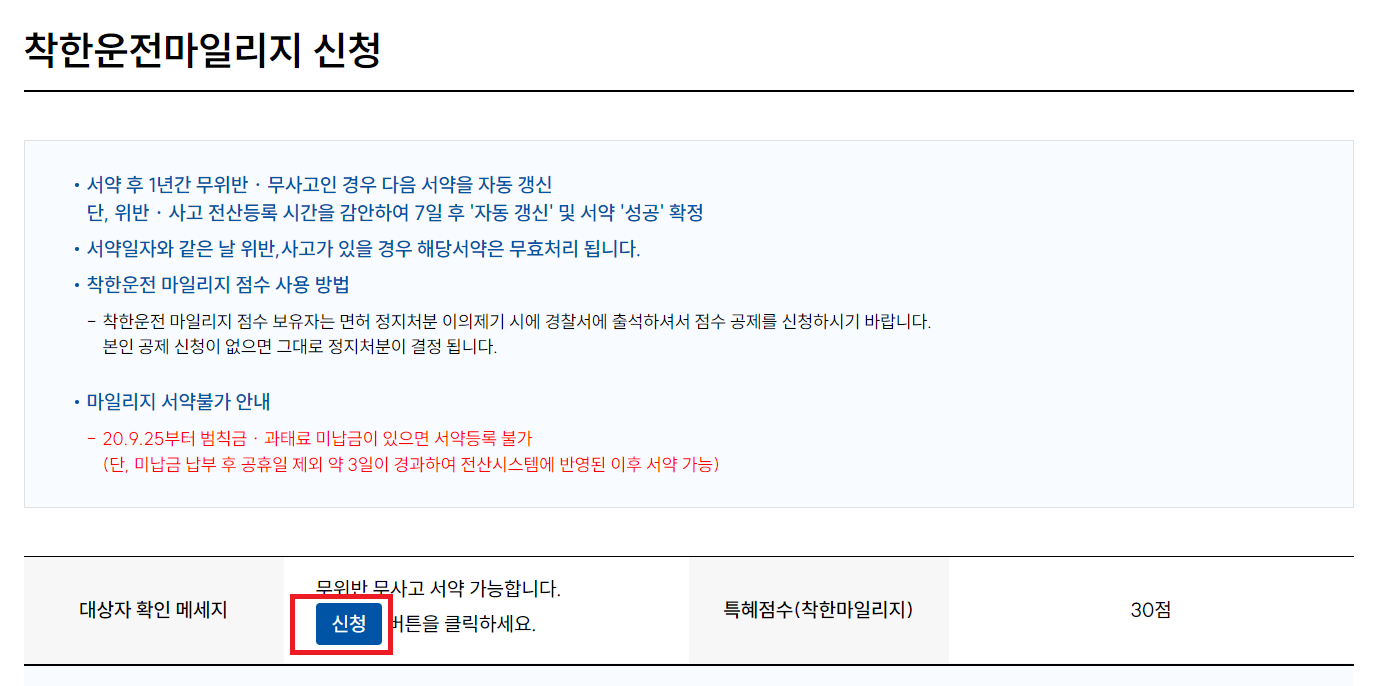 착한운전 마일리지 신청 및 조회